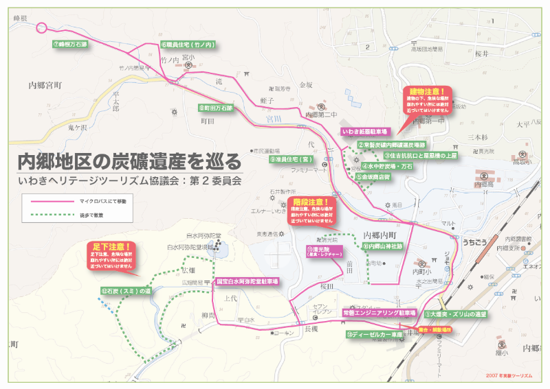 そこに着目したのが「いわきヘリテージ・ツーリズム協議会」の活動です。これらの産業遺産等を全国の人々と「共に学び共に考え共に伝え合い共に楽しみ合おう」と願い、このような旅行形態への参加を呼びかけた次第です。